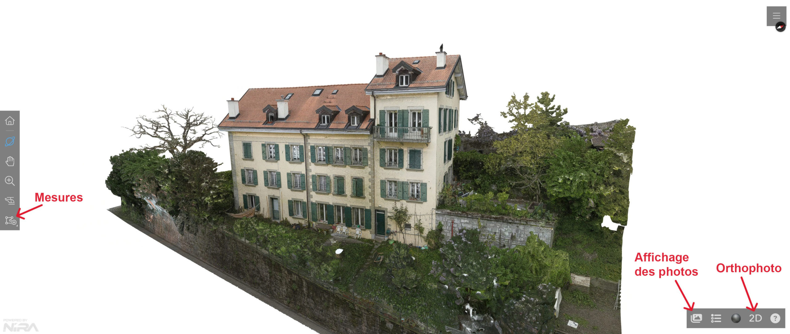 - Modèle 3D réalisé par photogrammétrie aérienne et terrestre.