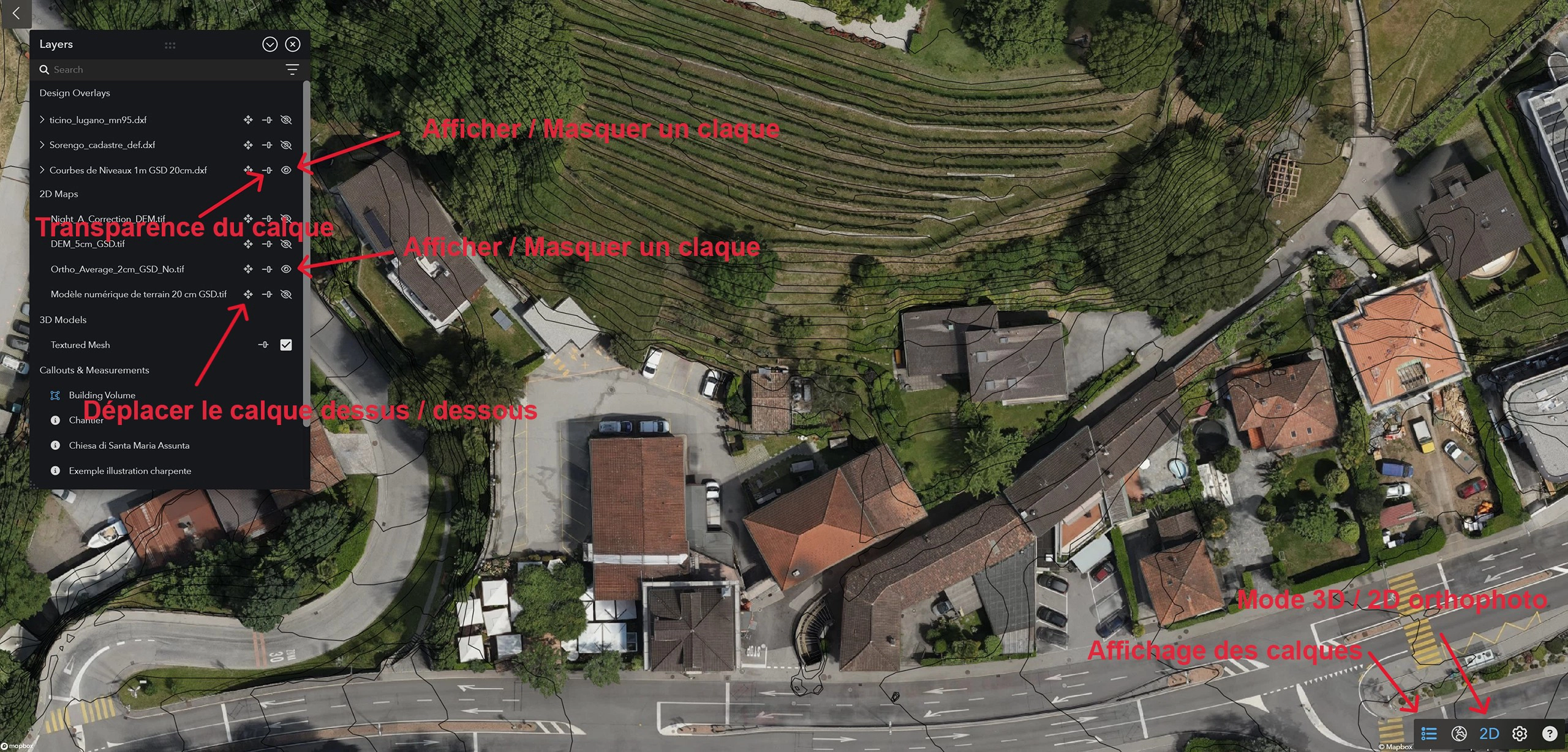 . - Affichage des calques, des mesures et des annotations